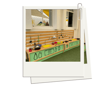 Our sensory Muddy Kitchen allows children to explore textures, water, sand, soil, and natural materials in a fun and safe way. This hands-on experience supports creativity, imagination, and fine motor skills through open-ended play.