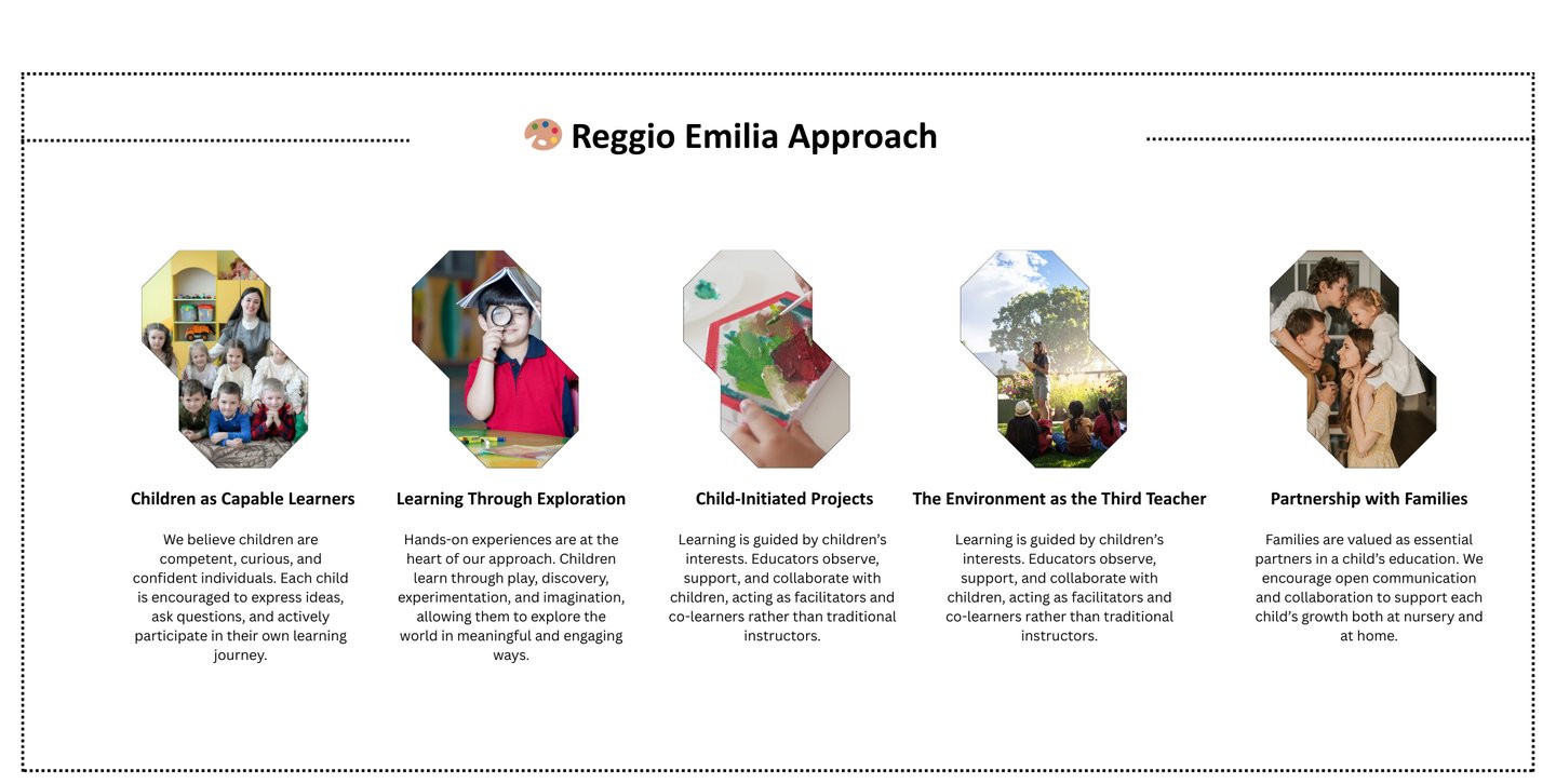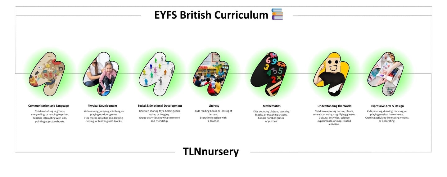 At TLN Nursery (Tree of Life Nursery), we offer a unique learning experience that blends the EYFS British Curriculum with the Reggio Emilia philosophy. This combination creates a rich, creative, and child-centered approach to early education.